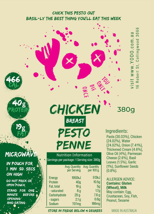 YODO returning Jan 11th Chicken Pesto Penne (466-500 cals)