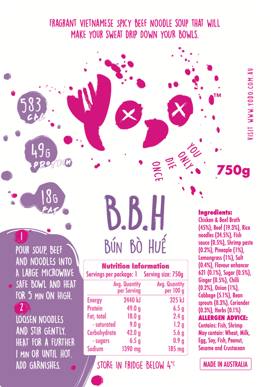 YODO Returning soon BBH (Bun Bo Hue) Spicy Beef Noodle Soup (583 cal)
