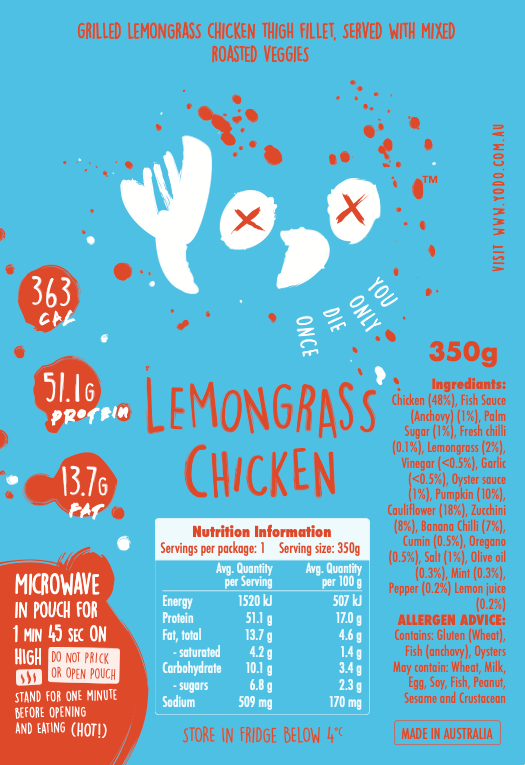 YODO returning Dec 12th Lemongrass chicken with roasted veg(363 cal)